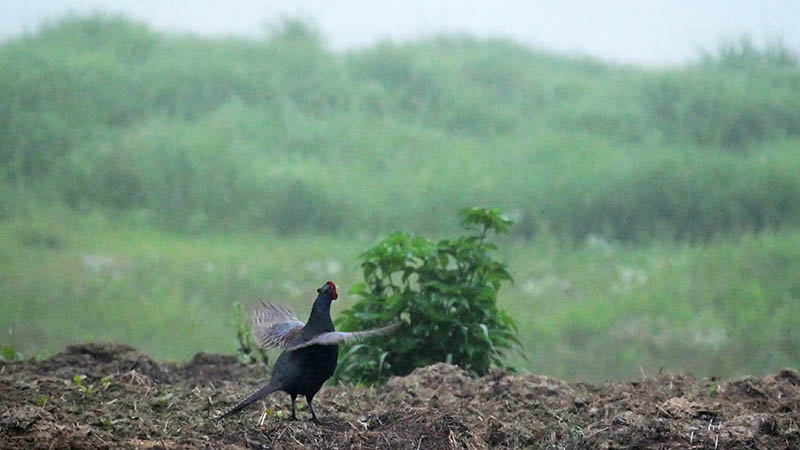 遠くで鳴いてホロ打ちするキジ