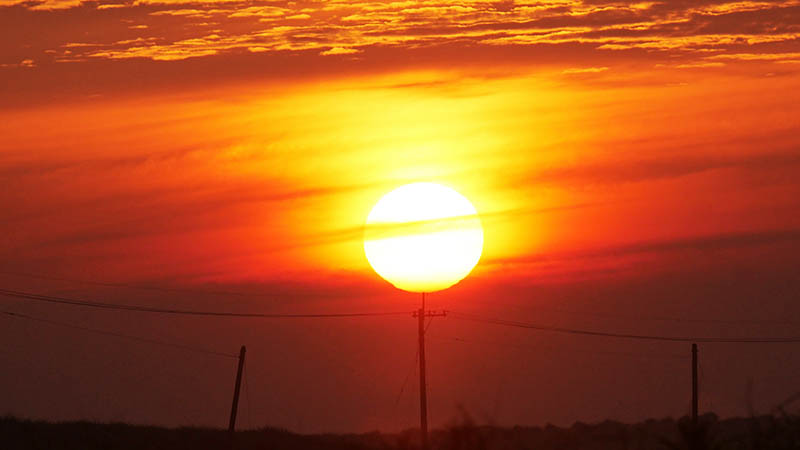 5時を回ると、朝焼けの雲の間から出る朝陽にカメラを向けます。