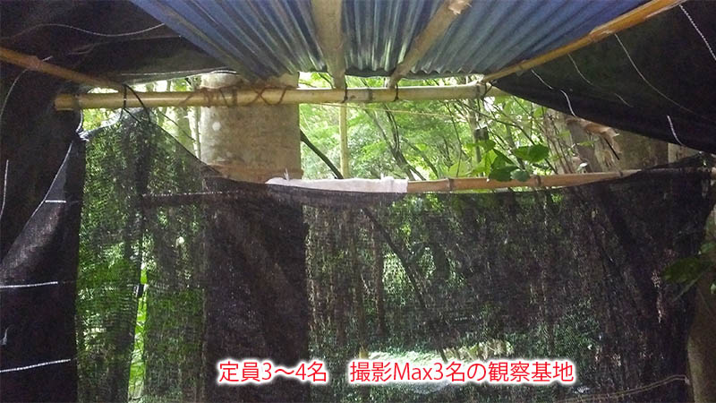 孵化までは2~3日おきに、10~20分間のカモフラネット越しの観察。孵化後は5本の木の下に、ヘビブロック剤を置いてアオダイショウ避け。その後は観察基地を設置、人の姿を見せずにトータル30名弱が観察撮影。