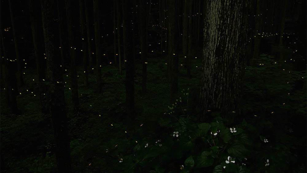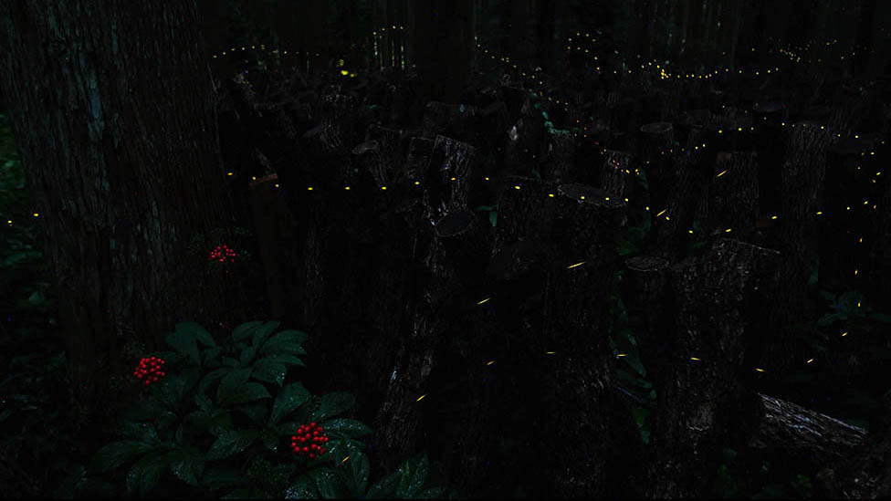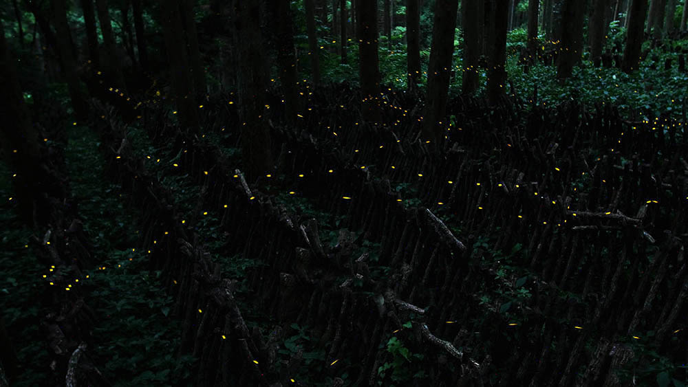 点滅が特徴のヒメホタルと杉林のドクダミ