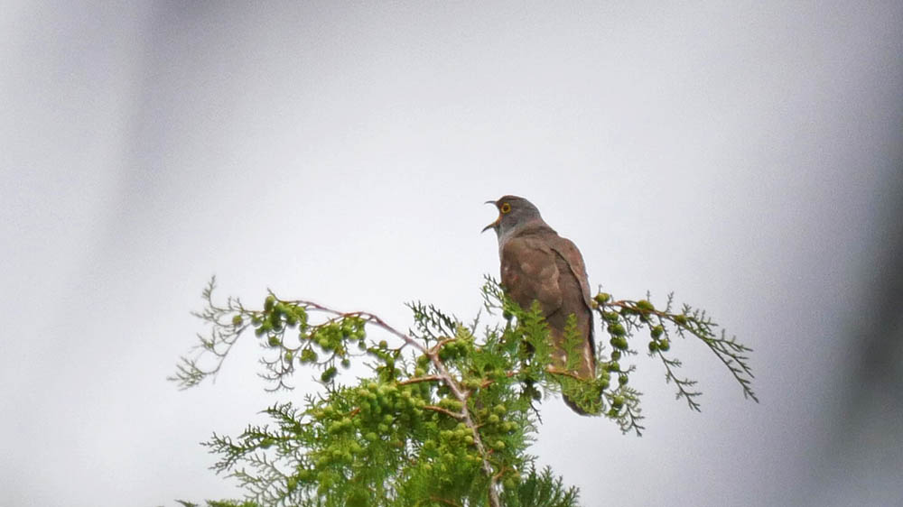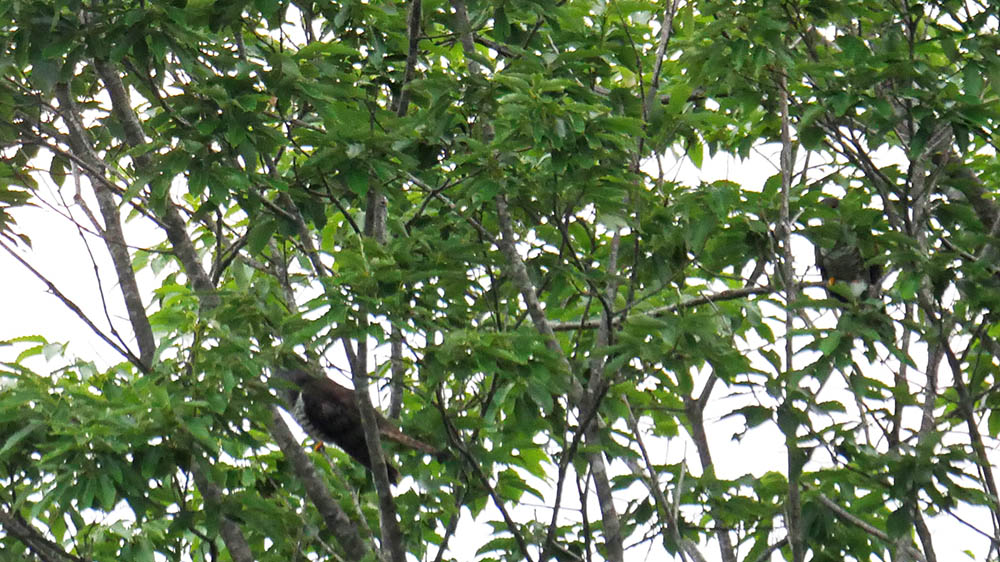 以後2017・2018・2019年と筋湯温泉近くのセグロカッコウを追い求め、ニアミスは何度も有りましたが、鳴いて飛ぶ姿を見ただけ。2020年は黒岳方面の個体を追い、ここでもニアミスのみ。同時期に県民の森で仲間たちが別個体を追って、100m以上先の杉の木で証拠写真を撮っていました。