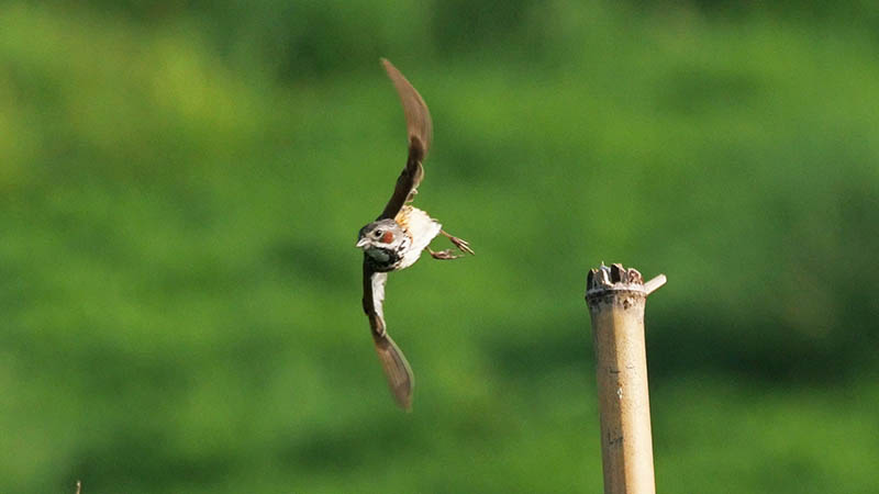 太陽の動きも速いですが、ホオジロも鳴かずに草むらへと降りたのです。