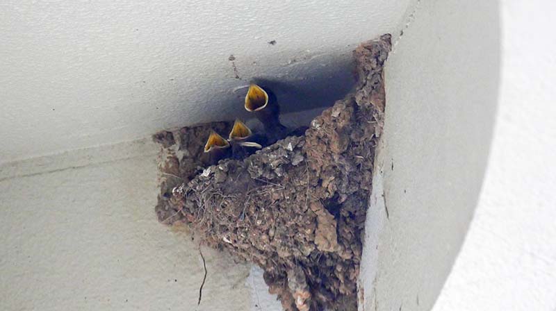 入り口ではツバメの仔がお出迎え