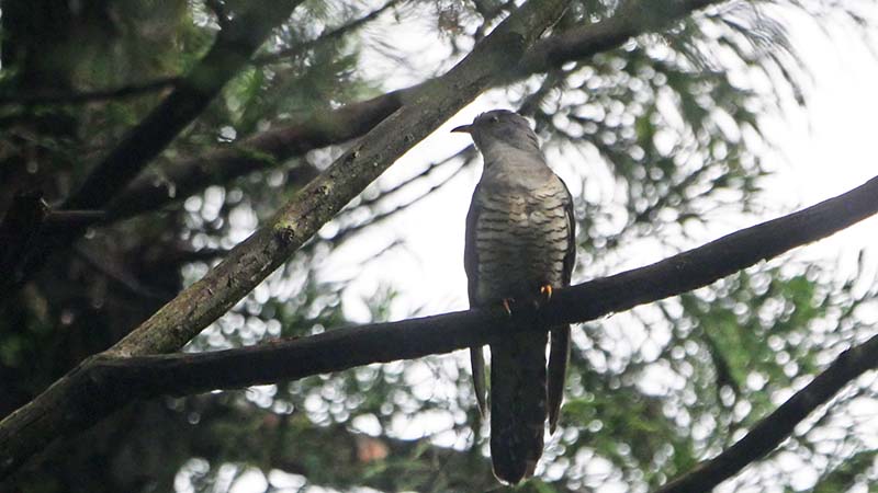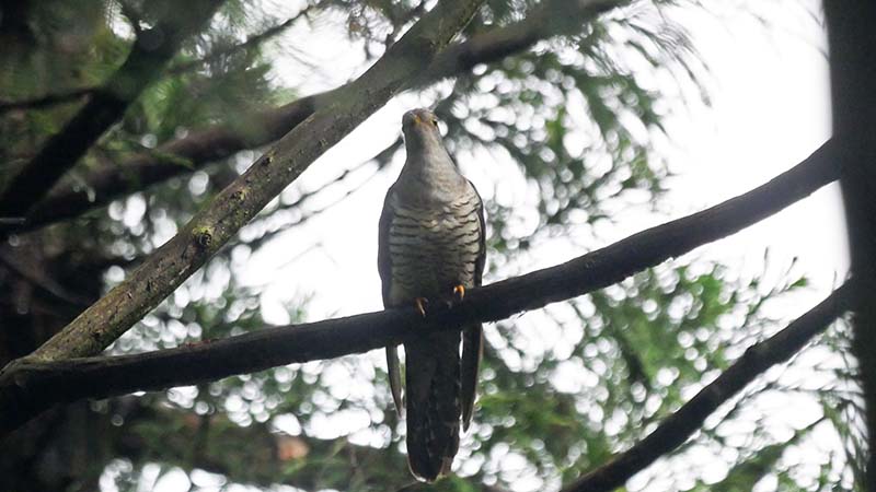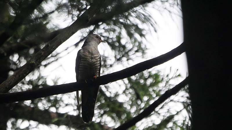 彼女は8時53分~8時56分まで辺りを物色し、私たちの頭上を通過して30m以上先へと飛んだ。ツツドリの♀が托卵相手の巣を探していたものと推測します。