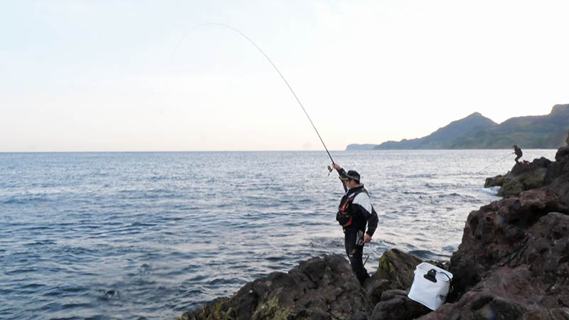 一便の3時出港は、度島(たくしま)を経由して生月の北磯から順次瀬上がり、私たちは5名は最後の方で、灯台下に連なる磯へ4時前に上げて頂きました。