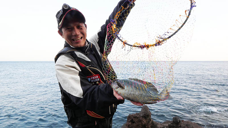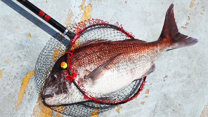 ゲンを担いでの釣行で、初めて掬ったのが狙い通りの大型マダイでラッキーでした。水の抵抗がとても少ないので、思い通りに扱えるのが良いですね(^^♪