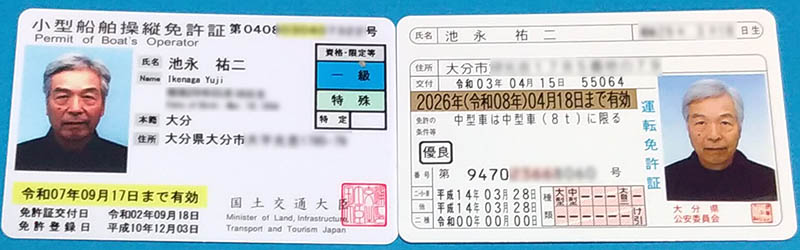 他にも免許はありますが、老いて使っているのはこの二つでしょう(^^♪