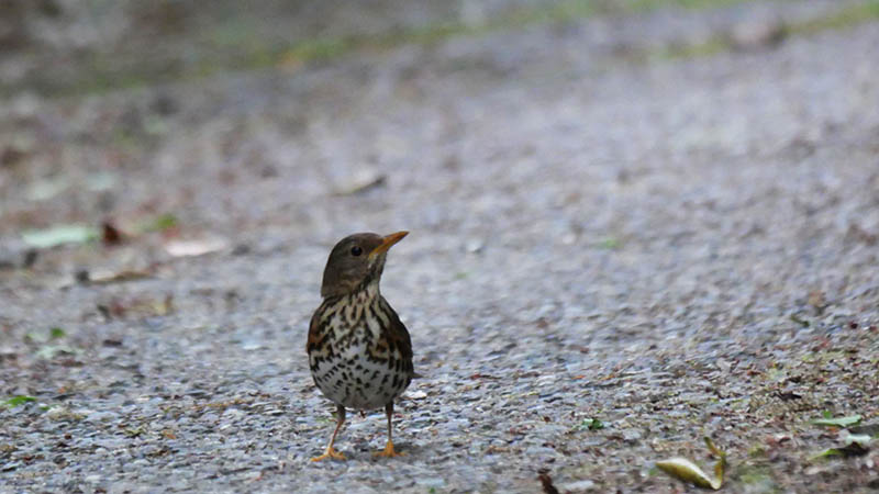 昨夜からの強風は早朝も続き、道沿いには木々の芽や花・葉などが相当に落ちています。それらと共に小さな虫も落下しており、クロツグミやシロハラは地面を探してエサを漁る事が多くなるので、道沿いは格好の撮影場所になります。