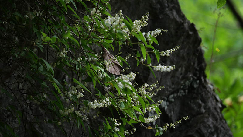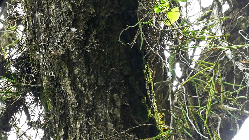 このランも初めて見る種で、双眼鏡で探すほど木の上の方にある。