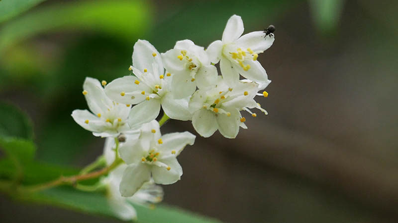 ウツギやシモツケ類の花が所々に有り、その中に珍しいコミノヒメウツギ。