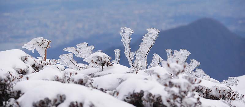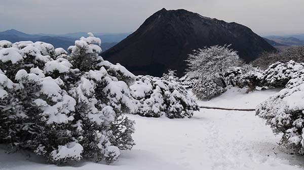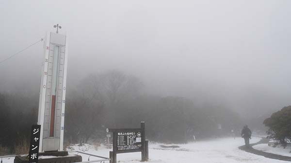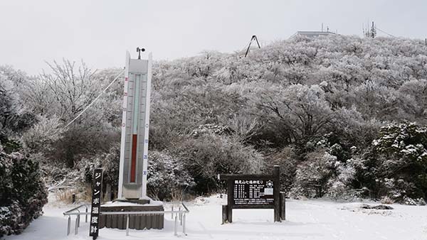 この低気圧が日本の南海上を通過する時には、主に北東風が吹いてオホーツク寒気団の寒気が強ければ雪になるのですが、大分の平地は雨で鶴見岳は雪。その南西に位置する由布岳は、鶴見岳より標高が高いにも関わらずほとんど雪は無い。