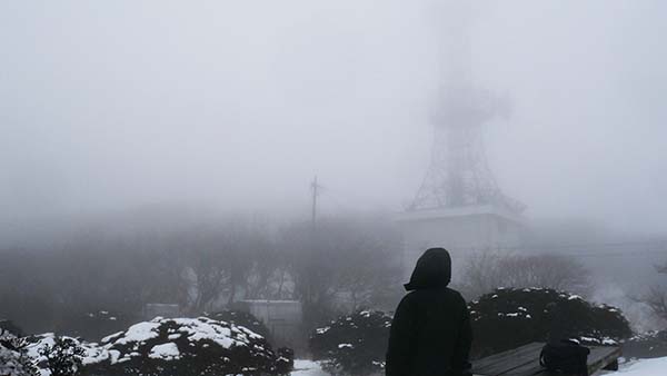 その理由、北東風で先に鶴見岳に当たった雲は寒いので雨にはならず雪が降って、その残りの雲が由布岳方面へと流れます。しかし鶴見岳で多くの水分を失った雲だから、由布岳に雪が多く降らなかったと私は判断しているのです。