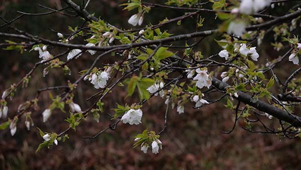 県民の森で真っ先に咲くのは河津桜、次が大島桜と寒緋桜、後は山桜が来て染井吉野、更に枝垂れ桜や陽光桜と続き、牡丹桜がトリを務める。