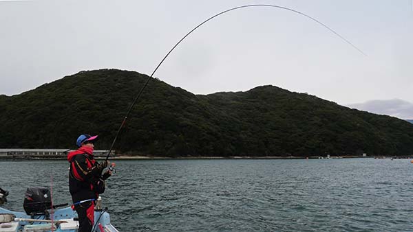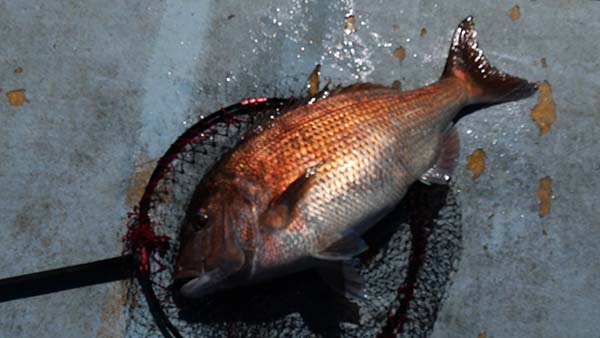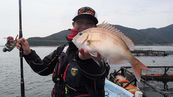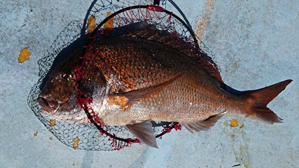 最後のアタリも底まで到達する寸前でのアタリ。重量感ある底引きを見せた後は何度かの突込みを見せましたが、腹が凹んだ85㎝マダイをゲットです。
