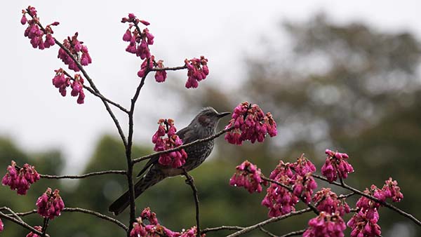 ここしばらくは、寒緋桜の小鳥たちを楽しめそうです。