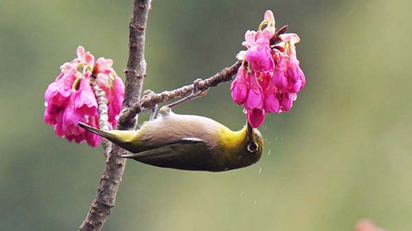 メジロやヒヨドリは最初から蜜を吸うのが目的。