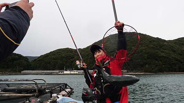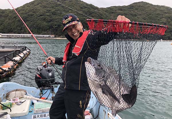 そんな中、みどりちゃんが腰の曲がった4㎏はありそうなブリをゲット。その後は私に待望のチヌ。最後の一投で起死回生のチヌを仕留めたのはフジモン。