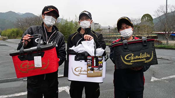 左から3位那賀君1850g 優勝溝部君2220g 2位フジモン2025g