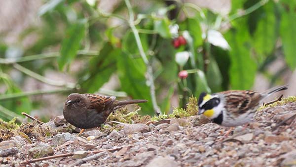 今朝のカヤクグリは2羽が残留、ミヤマホオジロは10羽が半減。