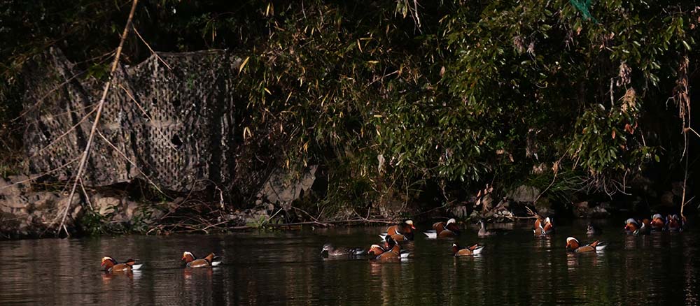 迷彩ネットからレンズを出さずに撮った、直近のオシドリ達です。