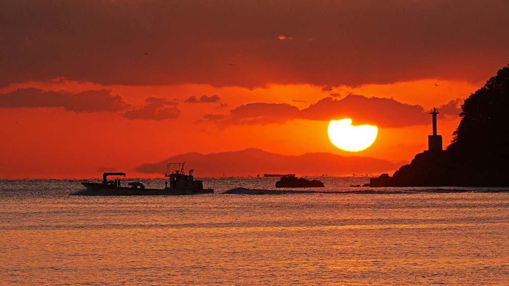 米水津の日の出と出港