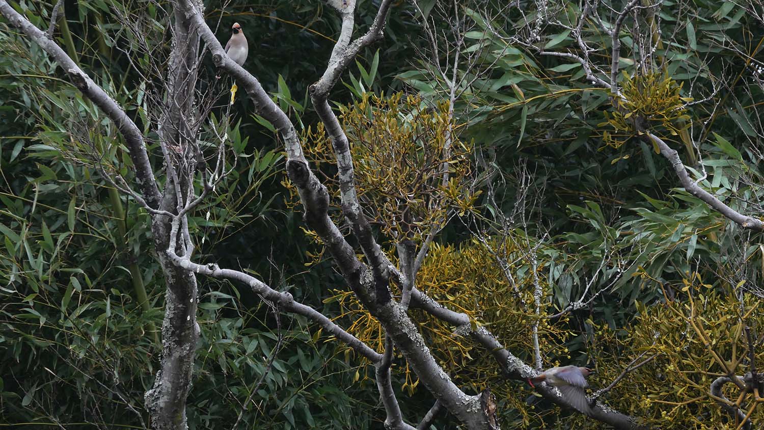 仲間の情報を元に現地に赴くと、一羽ずつ居てヤドリギの実を食べていた。