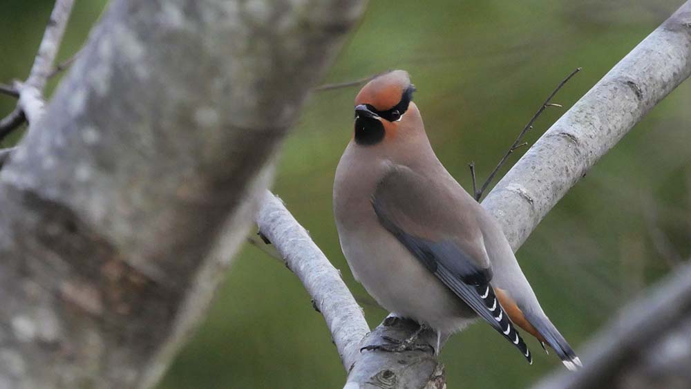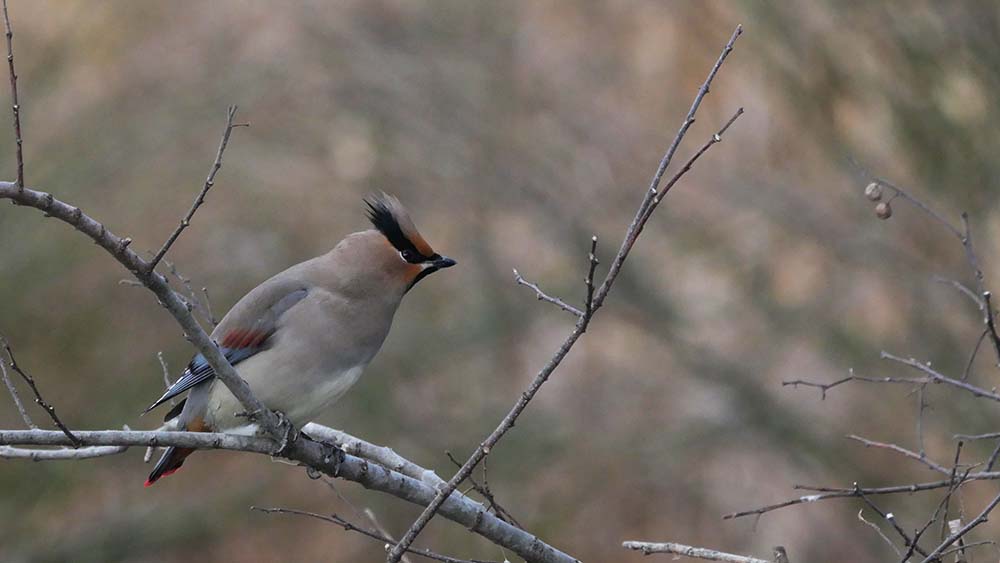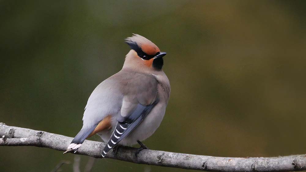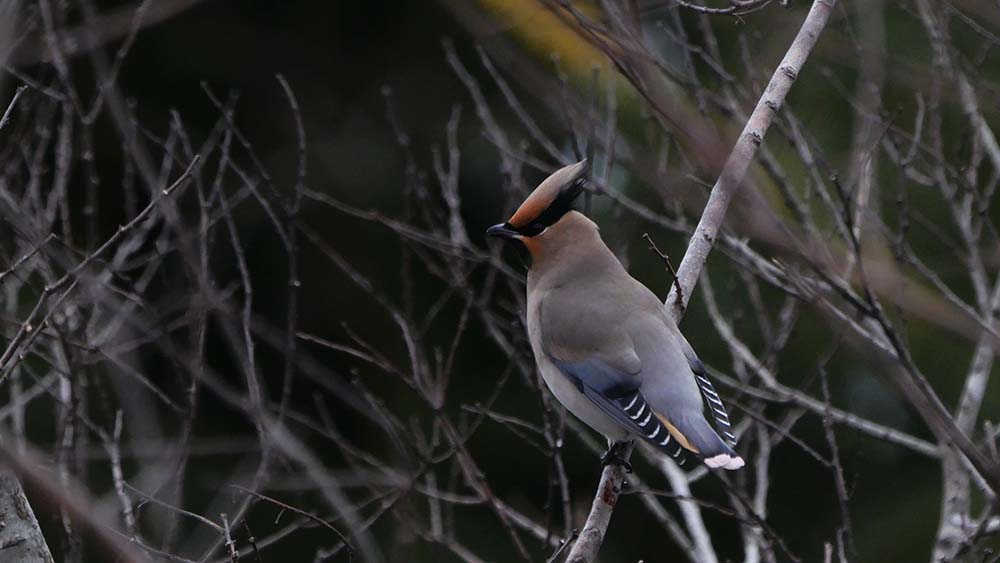 過眼線が後頭部まで伸びているので、キレンジャクではなくヒレンジャク。