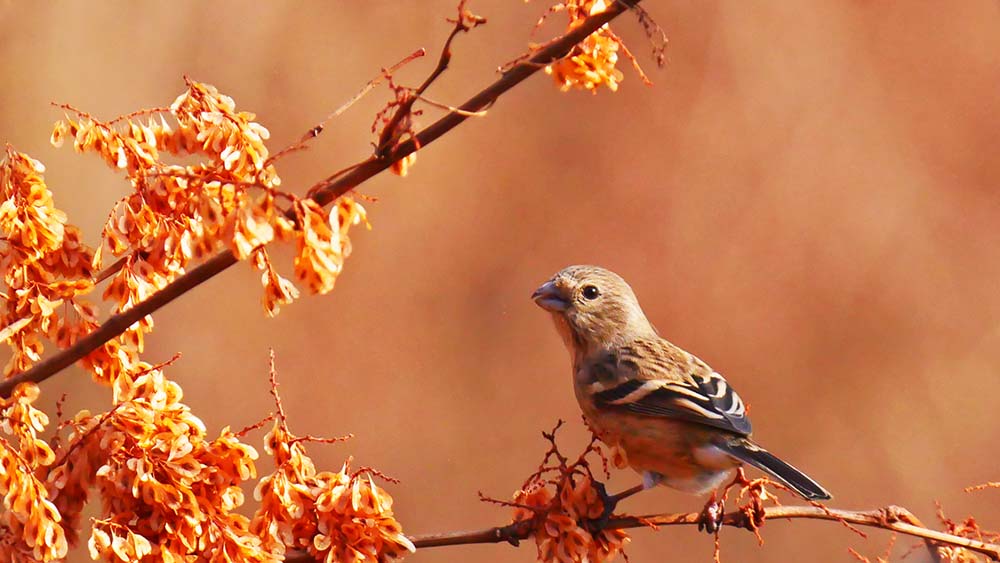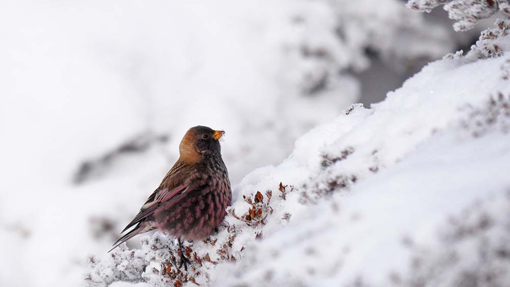 ベニマシコ♀、今年の県民の森には3ヶ所で越冬中