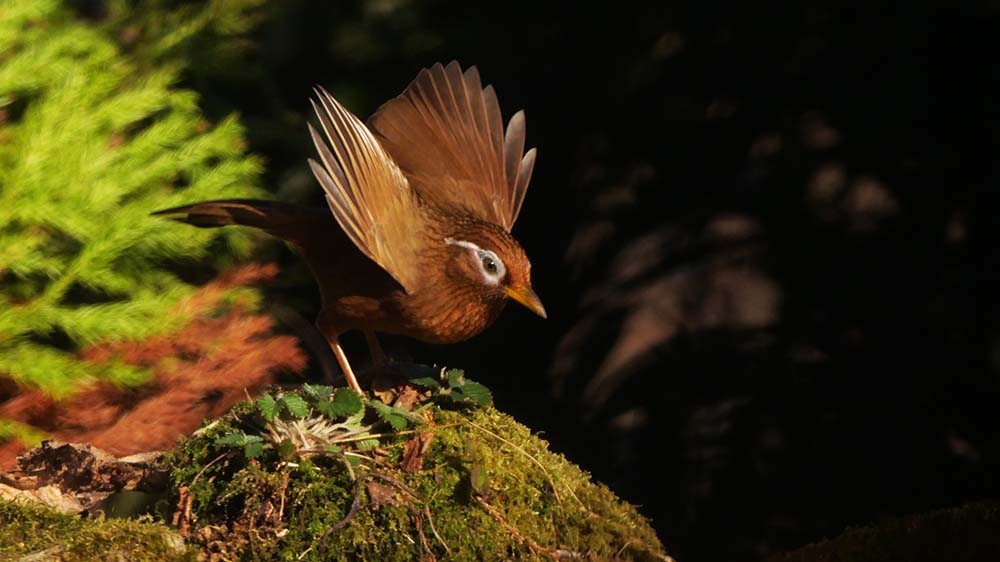 水場に向かう白尾ヒレンジャク