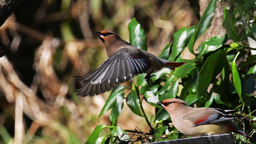 水場に向かうヒレンジャク