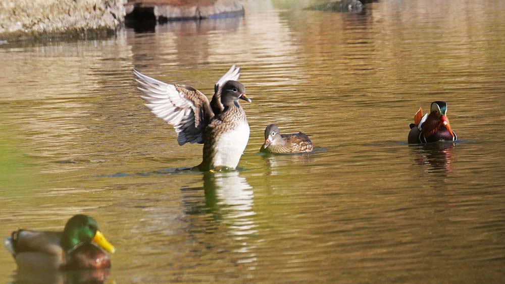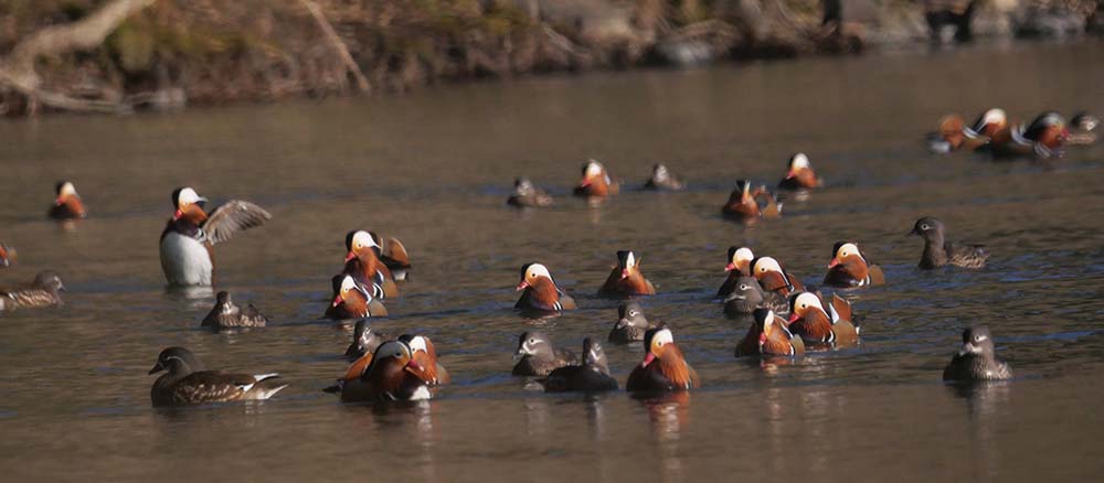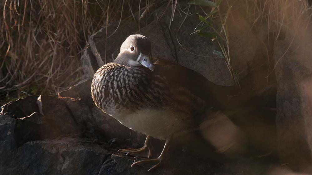 警戒心の強いオシドリを近くから写したい。