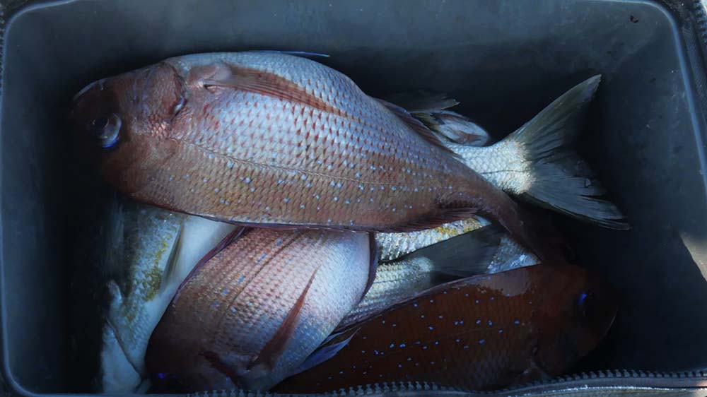水面からのマキエも併用しながらの釣りでしたが、この釣りも結構釣れるし少なめのマキエでも良い。中層から底までのピンポイントでの釣りには適している感じ。この場所の水深が40m以上だから、フカセ釣りより効率は良い。