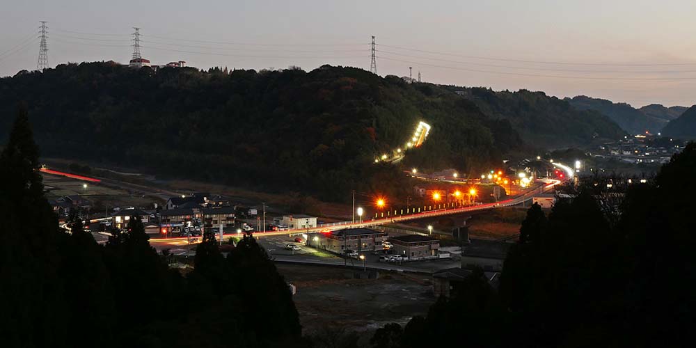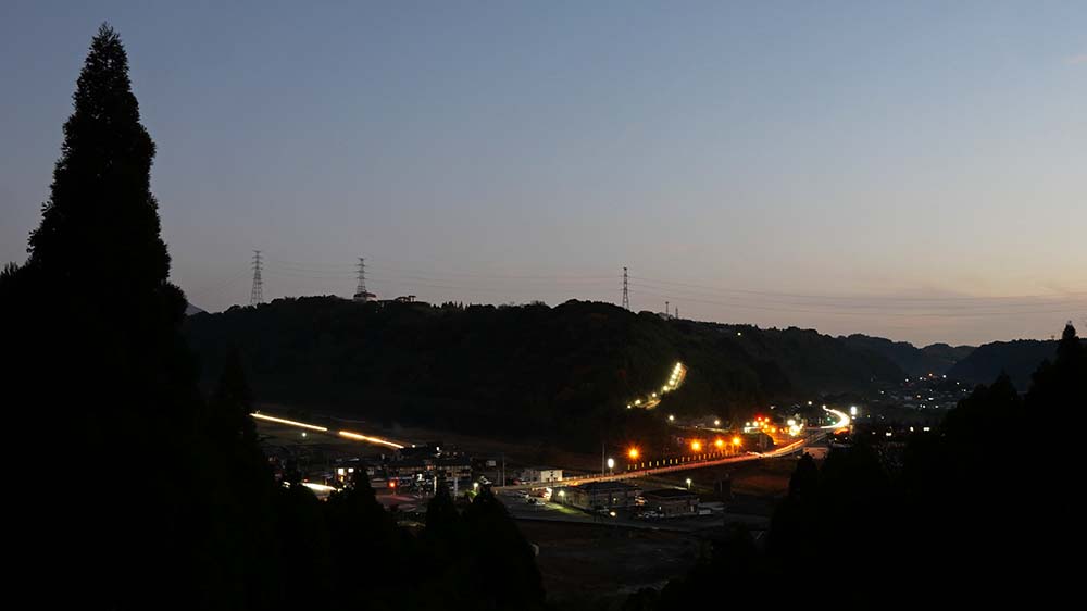 “かがりどの滝”付近から、野津原のヘッドライト・テールライトの撮影。