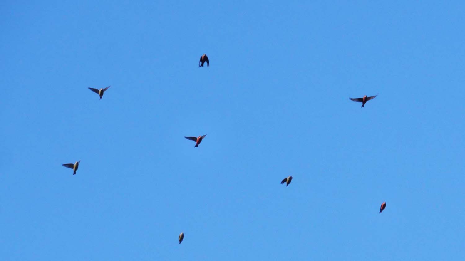 10羽くらいの群れと20数羽の2群、同じ群れか違う群れかは不明です。