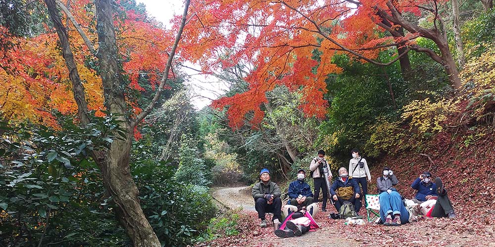 大分市の、森林セラピー山岳ガイドさん達の野鳥研修は10名。予定通り管理事務所に7時30分集合、移動後は県民の森のサテライト付近で11時30分まで。