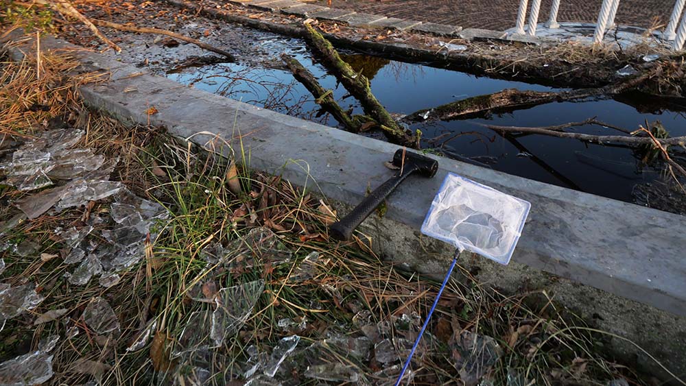 昨日の気温は0度で、氷の厚さは1~2㎜程度と薄かった。