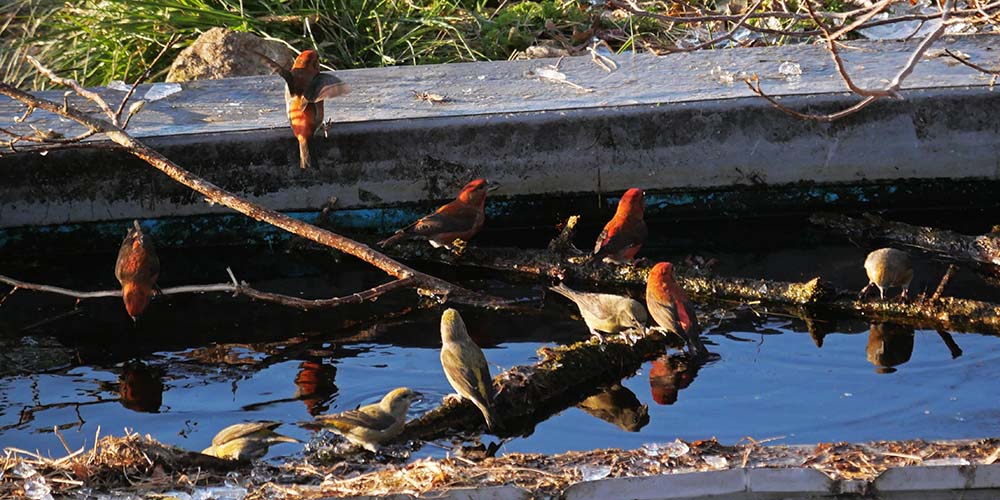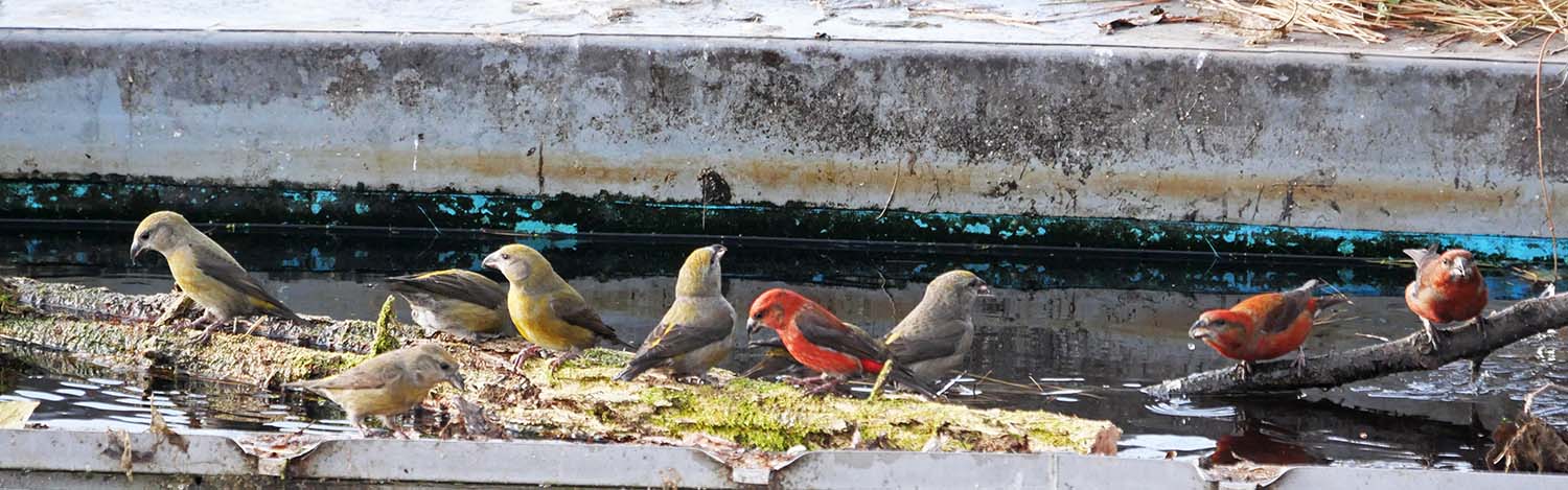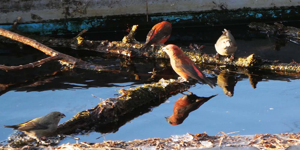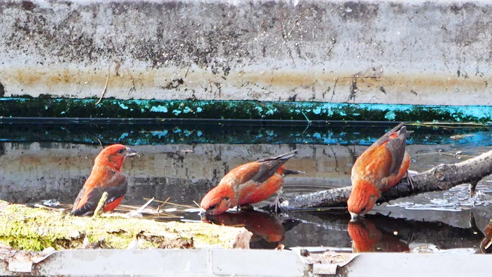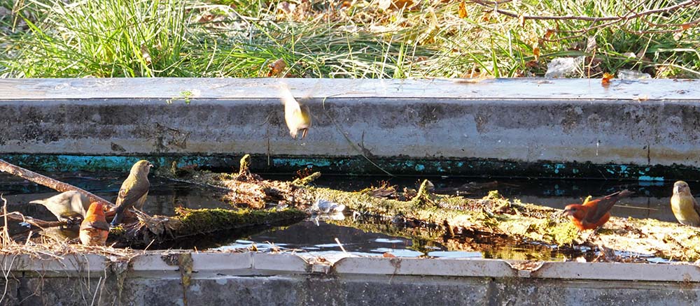 今回は群れの三分の一くらいのイスカが水を飲んだ