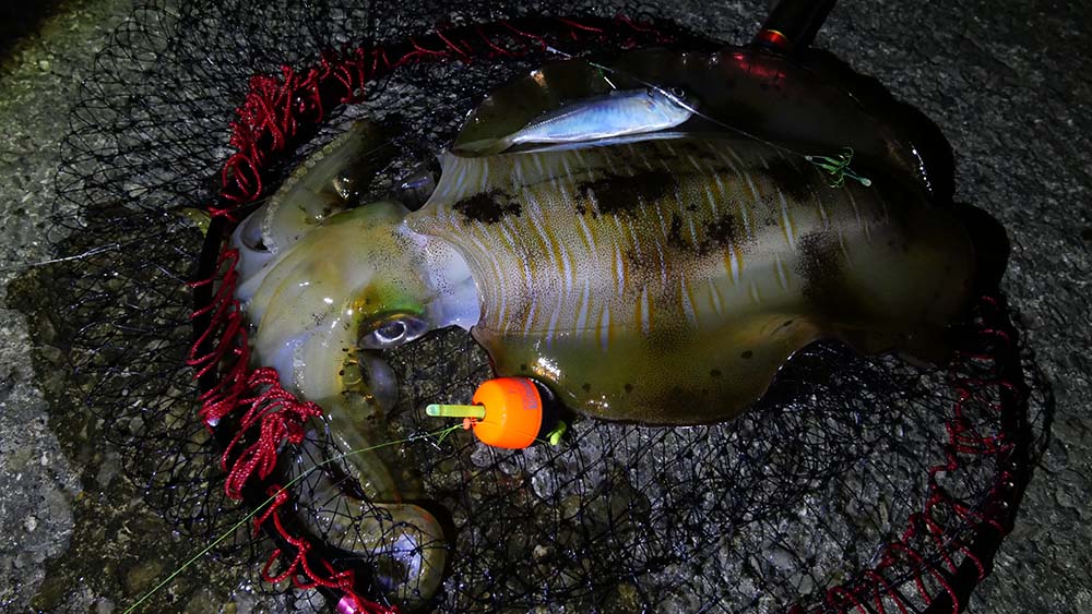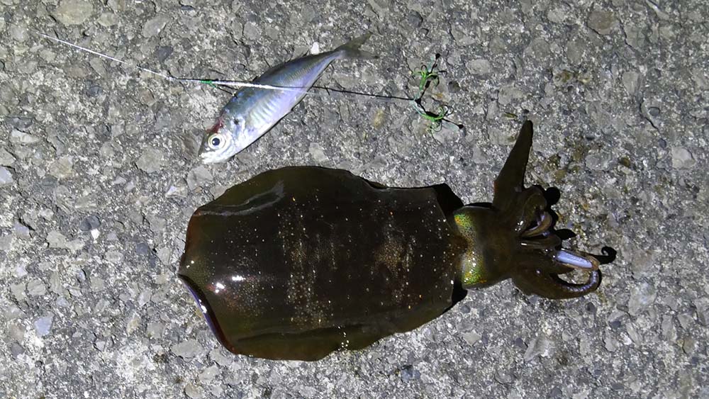 これが正解で4回のアタリで2匹のアオリイカをゲットできた。昨年は4回のアタリで全て取り込んだのですが、イカの抱きがすこぶる悪くスレ感が半端ない。