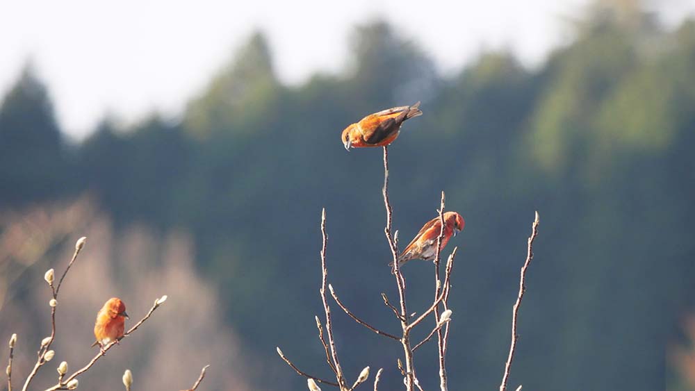 赤い♂のイスカは人生初の確認です(距離約100m)