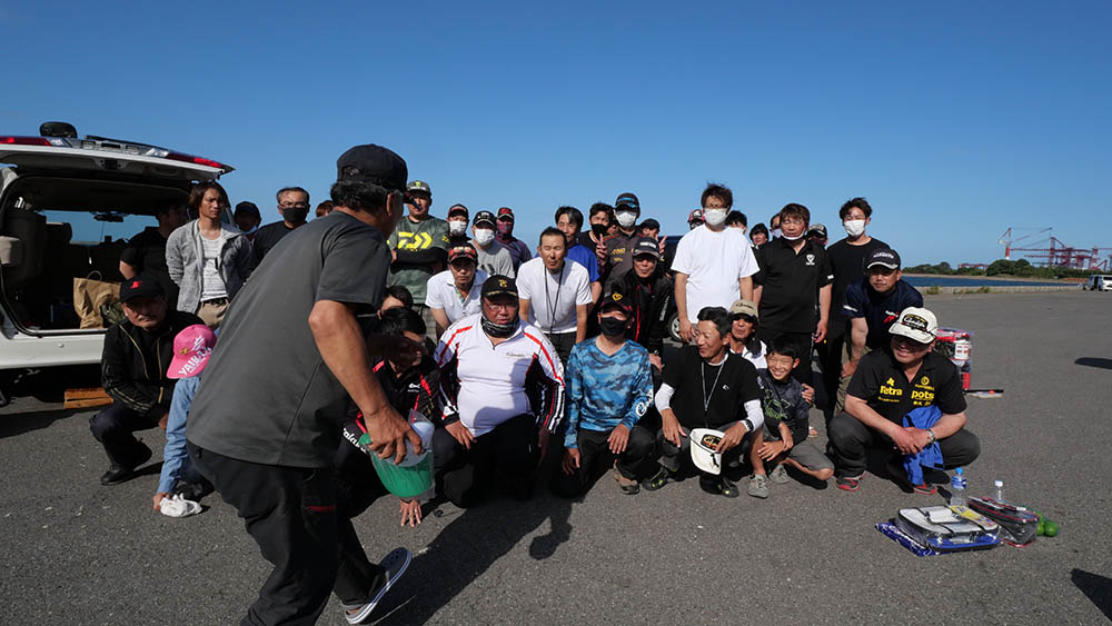 14時までの釣りが終わり、検量~表彰~抽選会~集合写真の撮影。