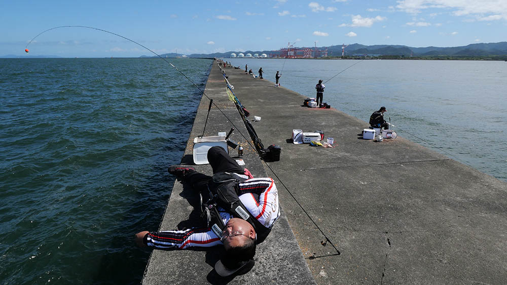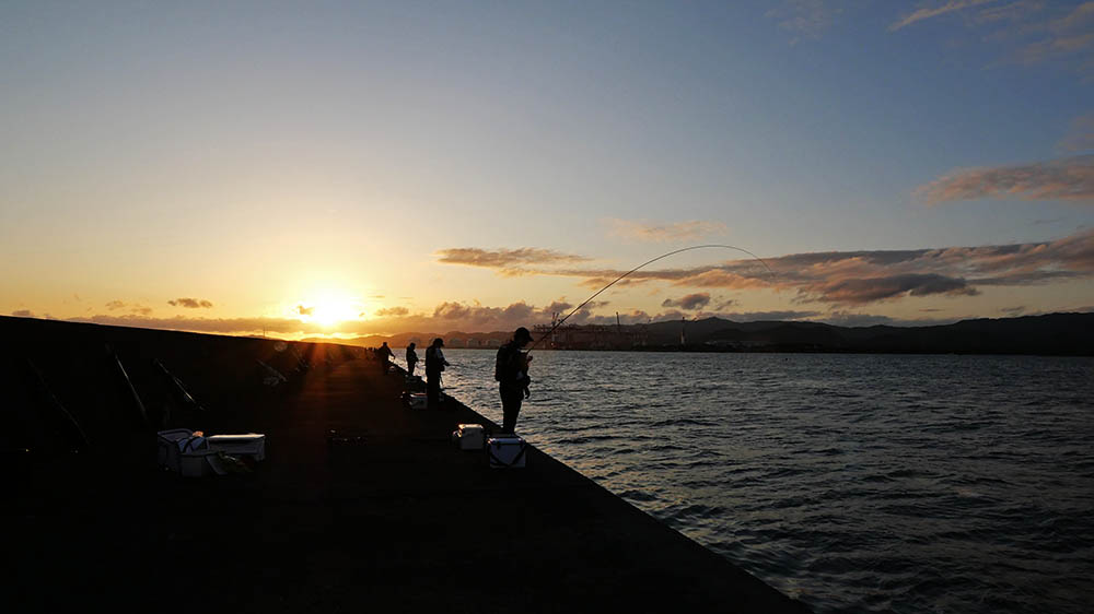 仲間で集まり、坂ノ市一文字で釣りを行った。