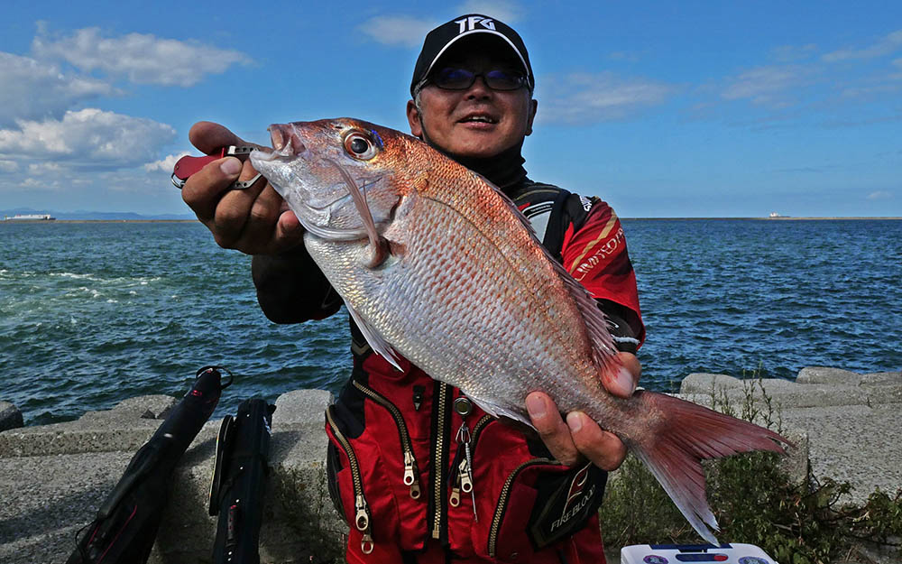 マダイを狙うにも北東の強風が吹きつけており、やむなく空生簀の風裏へ・・