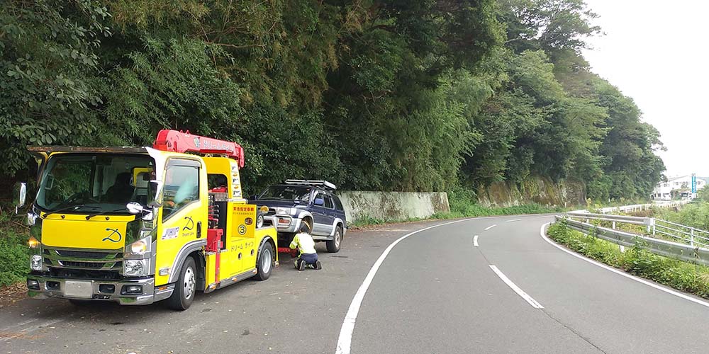 後は直線の坂を登って県道へ、空き地で牽引の段取りを済ませて終了です。
