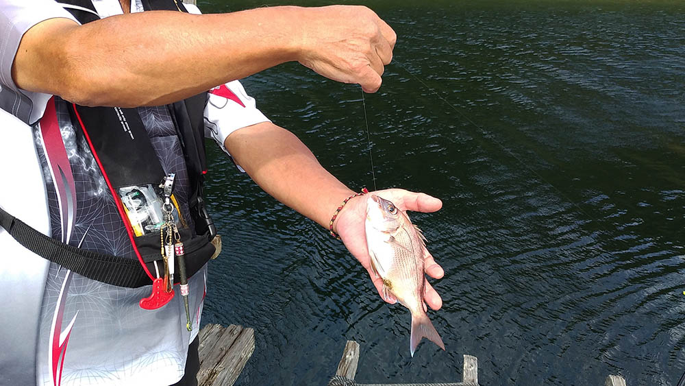 小型でも・・・地磯に近い筏へ移動して釣るも残念ながらマダイはボウズ。