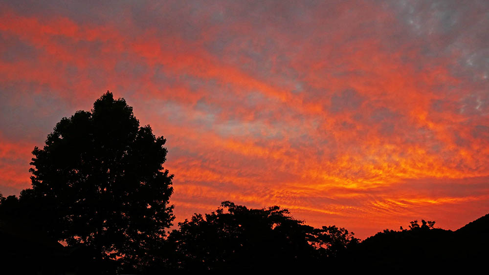 管理事務所の午前5時は朝焼け