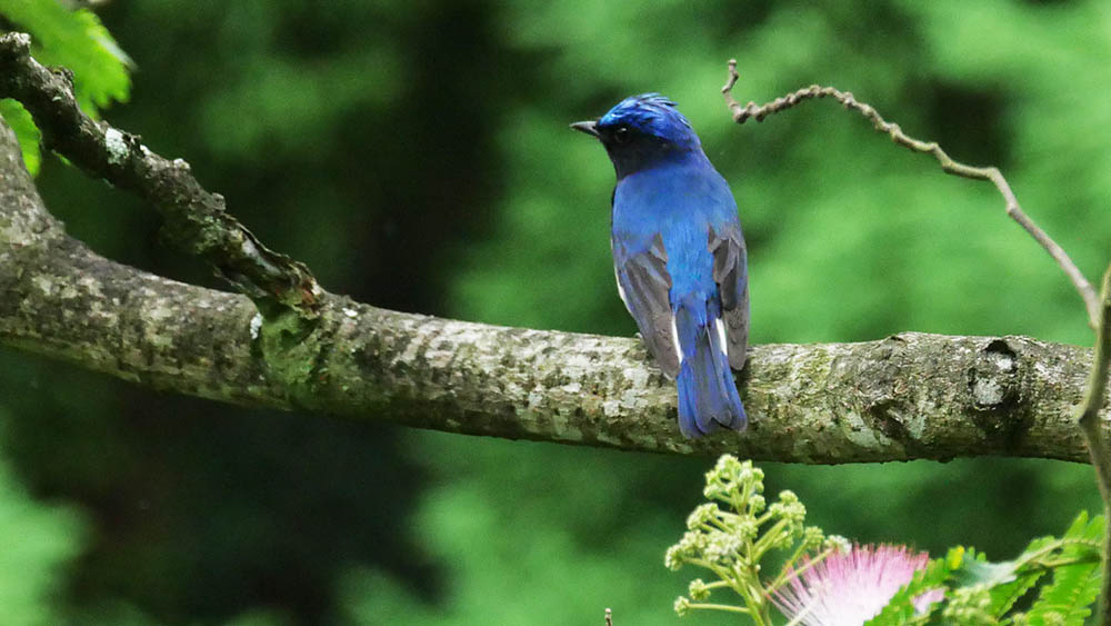 特に、オオルリが杉の梢で長く囀り、観察していた私たちの直近まで偵察に来てくれたこと。皆さん、10mくらいの距離で青い鳥を観察できました。又、ヤマガラ達の巣立ち雛の子育ても、十分に観察出来たのもラッキーでした。