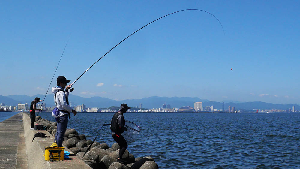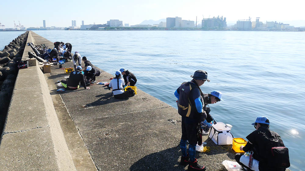 そんな授業を受ける学生に、一年に一回だけのフカセ釣りを経験させるのが今回の海洋実習なのです。学生数が多かった以前は磯釣りでのフカセ釣りでしたが、数年前からは近場のチヌ釣りで、フカセ釣りの入り口を教えています。