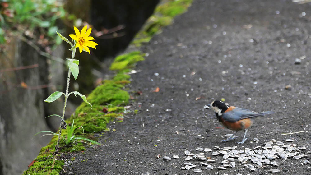 ヤマガラと彼が植えたヒマワリ。G-99・ISO1250 ・f4.9・SS1/80