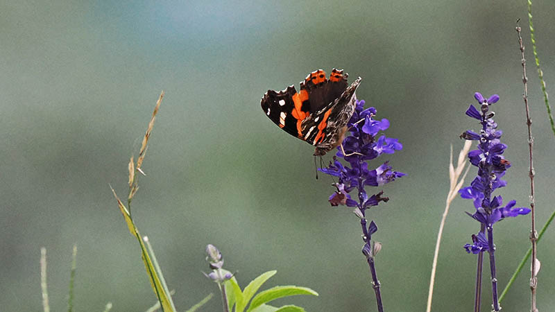 次はラベンダー園でブルービーを探すと、新しく植えられた花といつものラベンダーで一匹ずつを確認です。残念なことはヒゴタイの株が草刈りで刈られ、失われた株は20株以上で、残りは点在して5~6株程に減っている事。