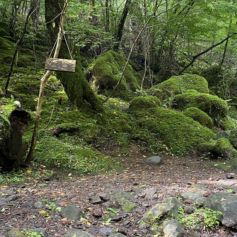 以前の表示板は、登山道脇の木からぶら下げたので気付くでしょう。